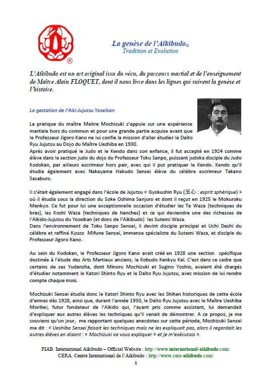Très souvent, après plusieurs années d’entrainements, nous avons tendance à oublier les origines de l’activité que nous faisons. Ce document, sur La genèse de l’Aïkibudo, qui nous est proposé par la FIAB (Fédération internationale d’aikibudo) nous rappel d’où nous venons, ce que nous faisons et quel est notre destination.
